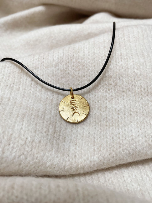 Médaillon en laiton doré à l’or fin 24 carats en France, avec vernis protecteur.